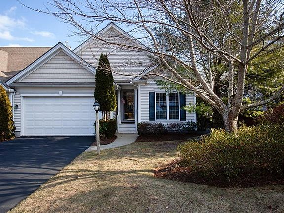 You cannot beat the LOCATION of this home in the 55+ active Del Webb community of Great Island in the PINEHILLS! Located at the end of a private street close to the Overlook Clubhouse, this "Franklin" model home offers single-level living with partially finished lower level and screened in porch. Lots of value in this home with two bedrooms and two full baths on the main floor with a great room, full bath and large cedar closet in the finished lower level. Hardwood floors, granite kitchen and baths. Large kitchen is open to sunny, eat-in area which opens to living room with gas fireplace with marble surround. Dining room with wainscoting and crown moulding, spacious remodeled master ensuite and laundry room complete the first floor. new windows on Three-season porch off living room steps down to a stone patio overlooking private backyard. Within walking distance to the clubhouse, indoor pool, fitness center, tennis courts, Great Island Pond and multiple walking trails. Get in now to enjoy Spring in the Pinehills!