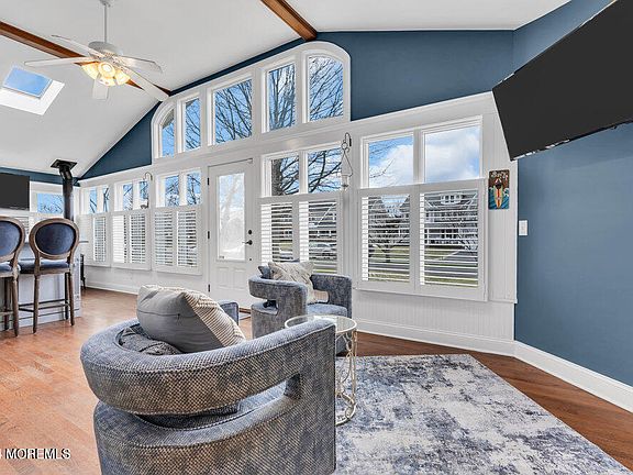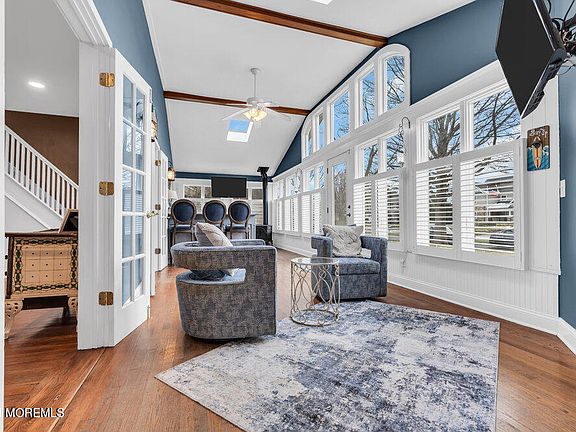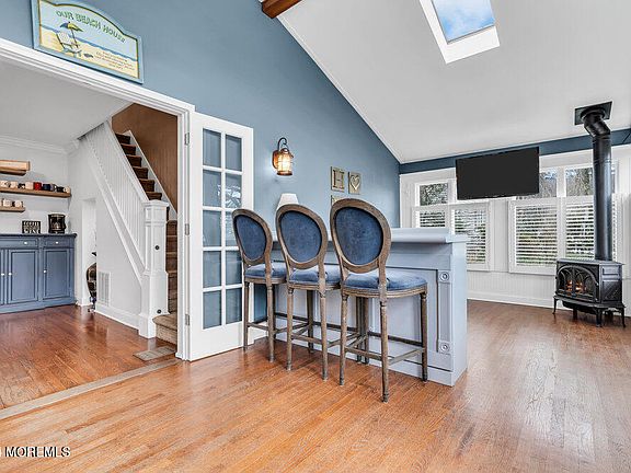 Beautiful spacious 5/6 bedroom 3.5 bath custom home in one of the most desired neighborhoods of Monmouth Beach. The heart of the home features a custom kitchen with large center island, pantry and built in sunny breakfast nook. Enter the living/family room with 12 ft stone fireplace, vaulted ceilings, wood beams and a built in bar for entertaining. Wash off from the beach in the outdoor shower and enjoy the expansive deck, outdoor grill bar and fire pit patio. First floor also hosts in law/ primary suite with large updated bath and one additional bedroom/office space. 2 staircases lead upstairs to 4 additional bedrooms and private balcony. Home comes with full house generator and is not in a flood zone. Yard can accommodate a pool.