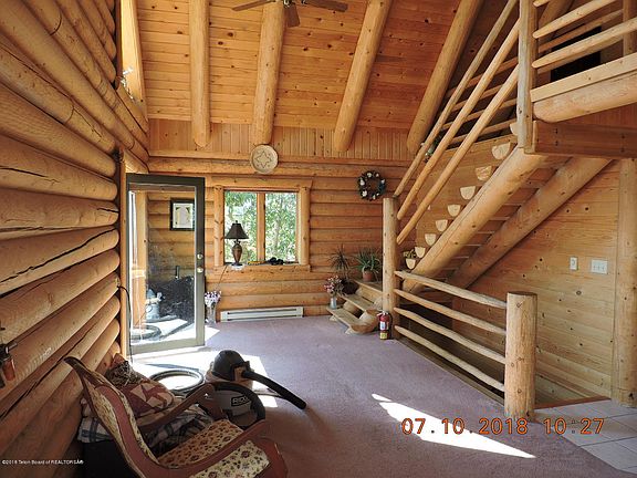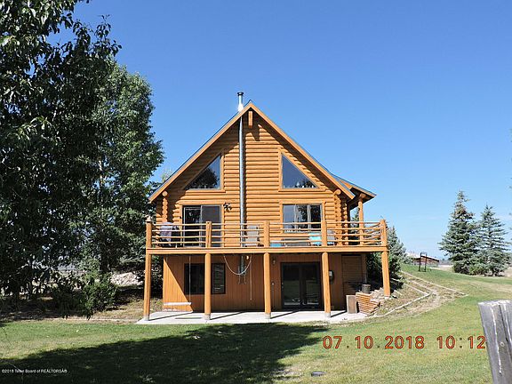 Great horse property, fenced, just north of Cora. 3 Bedroom / 4 Bath log home on 5 acres (two lots) in Monte Vista Estates. Three car detached garage. Workshop /Barn / Chicken Coop / and more. Views of all 3 mountain ranges (Wind River, Gros Ventre, and Wyoming). Loft master bedroom with 3/4 bath. Two bedrooms and two bathrooms in the basement. Woodstove in the basement. Patio / Deck / Porch. Fully landscaped with lawn sprinkler system. Borders BLM land to the East. See the pictures for more information.