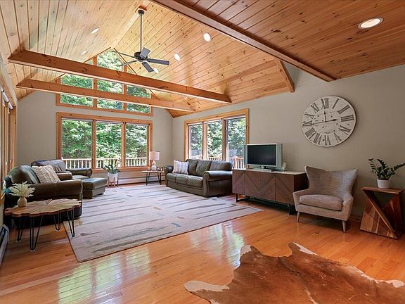 This three bedroom cape offering is a perfect blend of modern and mountain charm with abundant natural light in a highly desired neighborhood.  Features include a large mudroom, cozy living room with a wood-burning fireplace, sunroom for relaxation, and primary bedroom on the first floor for convenience. Its living room boasts large windows and a vaulted ceiling.  Upstairs, two bedrooms share a bath and spacious loft overlooking the living room.  The lower level walkout basement provides potential for expansion with stubbed in plumbing.  Plus this property is about Location, Location, Location!  It is nestled between the picturesque landscapes of Manchester, Bromley, and Stratton Mountain.  This is a great home for year round enjoyment, whether you like to ski and ride, or enjoy shopping, cultural events and fine dining.  Surrounded by lush greenery in the summer and views of Bromley in the winter, this charming abode provides the perfect balance of privacy and natural beauty. Embrace the inviting warmth of this home and make it your own slice of paradise today!