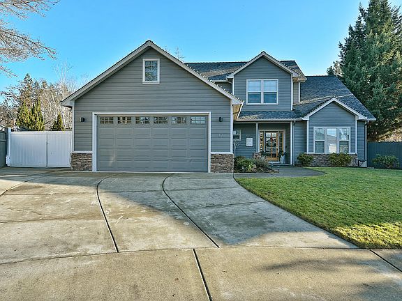 Nestled in a quiet cul de sac in the desirable Eagle Point Golf Course community, this custom built home is the perfect blend of neighborhood & seclusion. A light filled entryway welcomes you in. Vaulted ceilings, hardwood floors, upgraded lighting, & a gas fireplace w/ slate surround really cozy up your living/ dining space. New cabinetry, granite countertops, & stainless steel appliances complete your culinary zone. Master suite w/ ensuite bathroom located on the main floor w/ private entrance to the fenced in backyard, giving you privacy from the office space off the front entrance & other bedrooms upstairs. The backyard is the ultimate space featuring a swimming pool, treehouse/lookout, & strategically placed trees that backs up to pristine pasture w/ amazing views. This is the private oasis you have been dreaming of. Brand new storage shed behind your RV parking has so much potential! Central Vac, wood wrapped windows, custom lighting, and much more! Make your appointment today.