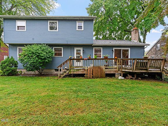 The first floor offers a 19×12 living room filled with natural light, a formal dining room, and a generous kitchen with stainless steel appliances and plenty of workspace. The kitchen opens directly to the 21×11 family room featuring a wood-burning fireplace—perfect for cozy evenings. A tastefully updated half bath completes the main level.
