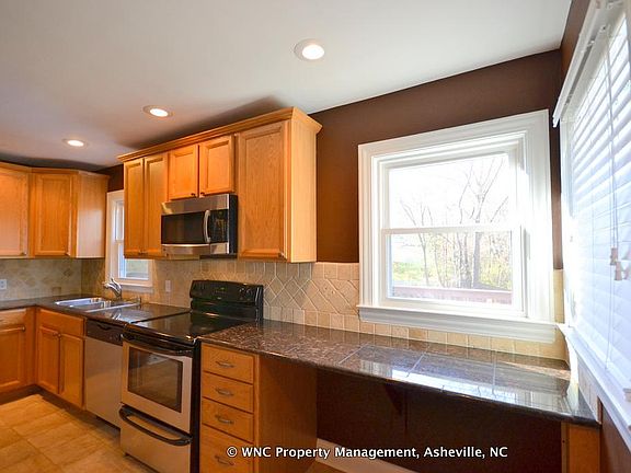 Updated Home in Walkable West Asheville, 0.25 Acre Lot, Garage. FEATURES: 2 bedrooms, 2 baths, approximately 1,100 square feet. Large master bedroom addition with ensuite bath and 2 closets (1 walk-in). Ensuite bath features granite vanity, mosaic tile and glass door shower. Updated kitchen with granite, stainless appliances, tile backsplash, and breakfast counter. Hardwoods and tile throughout; large back deck for entertaining. Fenced front yard and large fenced back yard; raised beds for gardening. Large walkout / storage basement (unfinished) and small 1-car garage (for compact cars only). Note: driveway is shared with neighbor. Central heat (natural gas forced air) and central AC (electric heat pump). Washer and dryer included. LOCATION: Easy stroll from lively Haywood Rd shops, restaurants, breweries, etc; 1 block from West Asheville Park; minutes to downtown Asheville. LEASE TERMS: Available 12/1/21. Initial lease term thru 4/30/23 with option to renew at 1 year terms thereafter. Income must be at least 3 times rent OR 36 times rent in savings. 1.5 month security due at lease signing. First and last month due at move in. Cosigners (who do not live in the home) are not permitted. Pets will be considered for a one-time fee of $200 per pet; 2 pets max. $45 per adult applicant for credit / background check. TO APPLY: You can submit an application on the WNC Property Management website. You will not be charged for your application if we do not process it. Offered by WNC Property Management.