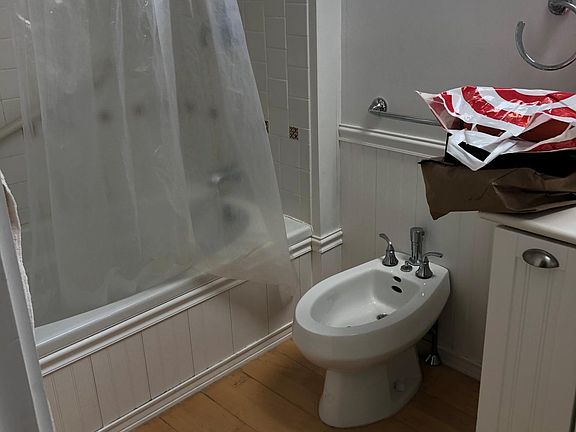 Available for immediate move in. Second and third floor of two-family house . Pine floors, living and dining rooms, 4 good size bedrooms and two full bath. Large from and back porches , small back yard. Tandem Parking in driveway for 2 cars. Utilities are not included. Electric is solar and heat is oil. First and security deposit, no broker fee