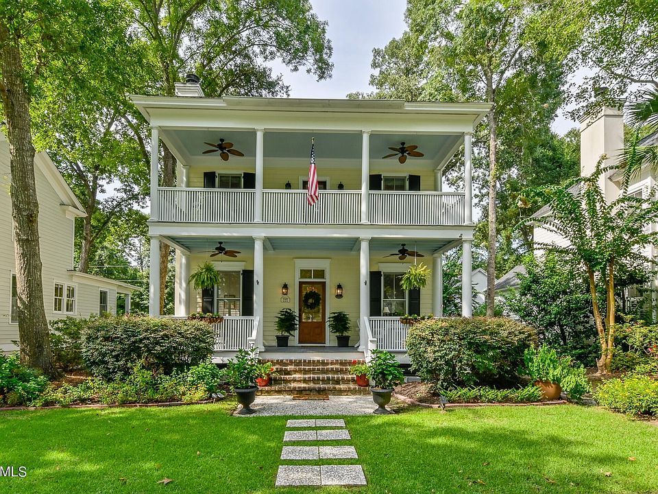 Southern Charm! Your own oasis with beautiful sights from the double front porches onto the Park at Town Crier. Views of the rope swing hanging from the majestic live oak in this common area beckon you to swing and relax as you did in your childhood. Upon your arrival you will find a warm and welcoming porch area for many parties or afternoon southern tea gatherings. Entering this beautiful and well maintained home, you will encounter an open floor plan with high ceilings and eye catching crown moldings. Even though there is an airy and open concept, each living area is defined. Meandering from the hall in the kitchen, you will find the primary bedroom with double closets and en suite complete with soaking tub, separate shower, vanity and toilet closet. The second story is complete with two bedrooms and bath. The front guest suite opens to the 2nd floor southern porch. The backyard is breathtaking with defined seating areas, tabbied patio and a great deal of entertaining space. Often in the wonderful community of Habersham, you will find yourself enjoying a stroll to the waterfront, tennis, pickleball, the pool and downtown market area. Don't wait to make your decision. There is so much to say about this amazing home and our wonderful community. I invite you to take the opportunity to book your showing and enjoy every detail of your new home.