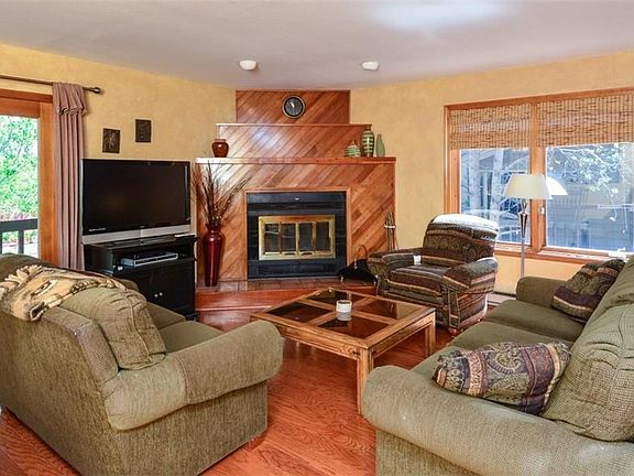 Located just one block from the downtown amenities, this end unit townhome has a peaceful and wooded mountain setting. Enjoy a cozy evening in front of the wood burning fireplace and take in the sweeping mountain views from the two spacious decks. The large downstairs family room offers ample space for both entertainment and additional beds providing total sleeping space for 12. The attached garage and generous closets offer great storage and the small complex includes a private hot tub as well.