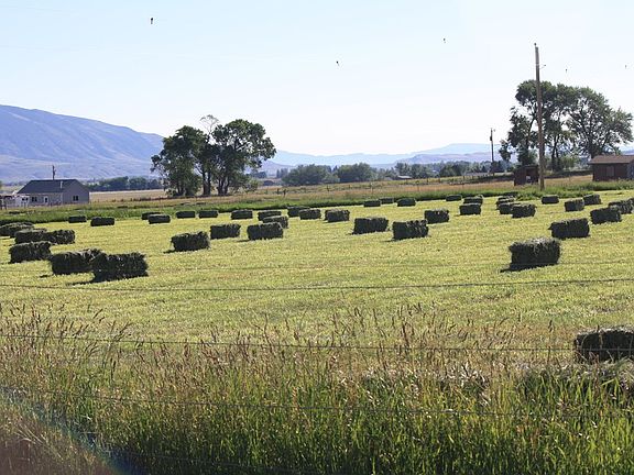 7.7 acres of good production ground and good irrigation. Lovely home with rustic fireplace, 2 bedroom, 1 1/2 baths, updated kitchen and fully finished basement. 30 x 60 insulated shop has concrete floors, wood stove, 220 electric. 40 x 24 barn, stores some of the 14 ton/yr of weed free hay (2 cuttings). Fenced pasture, private location. Mountain and reservoir views- this place is one of a kind.