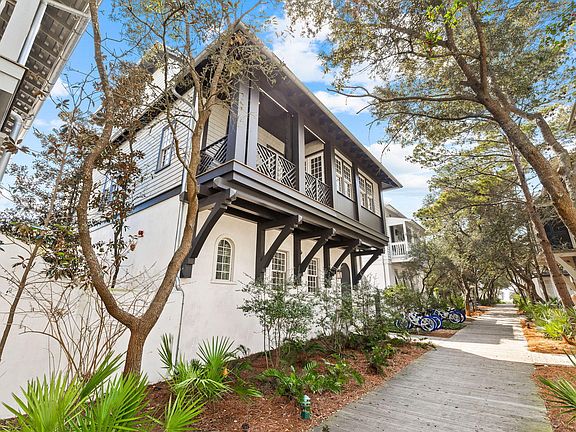 The perfect location just south of Scenic Highway 30A in the heart of Rosemary Beach. This exquisite estate has been thoughtfully designed to provide a luxurious coastal lifestyle, masterfully-designed and constructed out of solid concrete which provides 4,708 square feet of living space. Open and spacious, first-floor living areas offer elegant finishes that include custom tile work and peacock paver flooring. The great room commands attention with its exposed wood beams and Venetian accent fireplace, while the gourmet kitchen provides an inspiring place to prepare meals with its custom cabinetry, quartz countertops, and environmentally-conscious Italian Bertazzoni appliances.