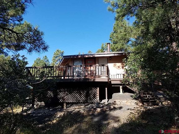 This one of a kind home in a hexagon shape sits among tall pines trees and gamble oak. Located on a corner lot (or should I say "lots") in a quiet cul-de-sac. An expansive deck on the Southeast side of the home would be an awesome place to walk out with a cup of coffee in the morning or entertain in the evening. This home has recently been remodeled in both 2015 and 2017. The breakfast nook now has a large window to catch the sun beaming thru. Two bedrooms - a master & small secondary one - could possibly be used as an office or exercise room. With the unique shape of the rooms, this home has lots of character. The crawl space is five feet tall with a moisture barrier and gravel flooring - a solid foundation. The detached garage has 110/220 electric service. Within walking distance to Lake Pagosa.