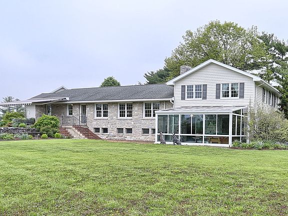 Must see home nestled in a beautiful country setting close to downtown Carlisle. This 4 bedroom, 2 bath home on 3.87 acres features a formal living and dining room, a family room with antique brick fireplace and a den with lovely limestone fireplace, a sunroom, a bonus room between the 3+ car garages, a back patio w/awning, large burn pit located next to the Letort Run Spring, a renowned fly fishing stream that flows through the lower yard.