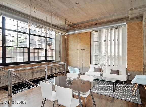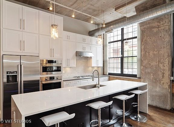 Spectacular duplex corner unit at one of the best true loft buildings in the West Loop! This extremely rare & impressive space was just completely renovated from top to bottom, featuring chocolate hardwood floors thru-out, 12 ft concrete ceilings, gigantic columns, exposed brick & huge windows. High-end kitchen w/waterfall quartz counters, extra tall cabinets, Bosch stainless steel appliances, pro-hood, built-in wine fridge, double-oven & marble subway tile back-splash. Large master bedroom w/fantastic custom closet system, in-suite master bath w/quartz counter, double sinks, stone tile surround, glass enclosed stand-up shower & Jacuzzi tub. A dramatic steel staircase leads to lower level w/2 large sized bedrooms, good closet space & custom sliding steel & glass door. 2nd bath features quartz counters, subway tile surround & stand-up shower w/glass enclosure. Separate laundry/mechanical room w/Samsung steam front loaders. 2nd private entrance leads to one indoor heated garage space.