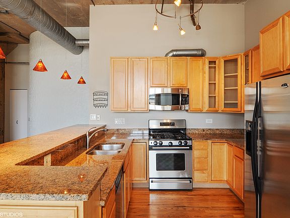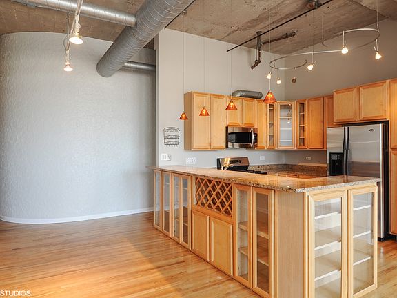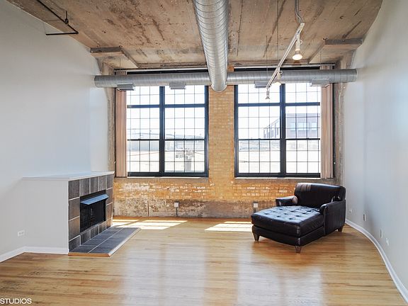 Fantastic true concrete loft in the West Loop! 1,750 sq ft large open floor plan with upgraded kitchen, SS appliances, granite counters, hardwood floors, 12' ceilings, exposed brick, huge windows and window treatments. Both bedrooms are fully enclosed with huge walk-in closets, plenty of storage thru-out the unit with massive storage room and washer & dryer in unit. Great southern exposure brings in tons of light. Impressive common roof top deck with unobstructed views of the city skyline! One indoor heated garage space is available for an additional $150!