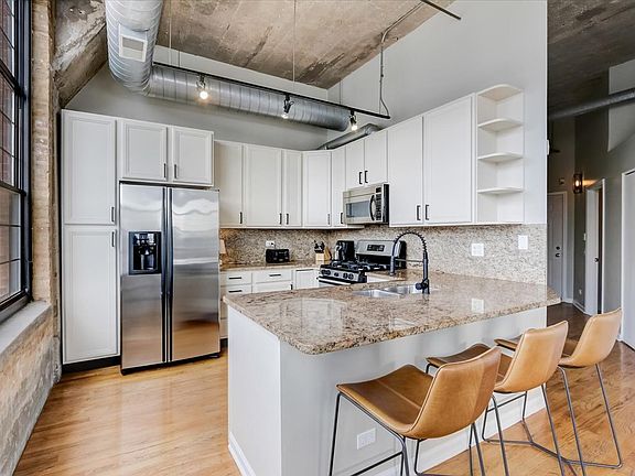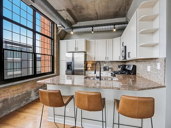 Now is your chance to own this sunny, industrial chic penthouse corner unit in the West Loop! This open concept unit features high ceilings and tall South & West facing windows, making the space feel so open and airy! The kitchen has newly painted cabinets with new hardware, granite countertops and stainless steel appliances. Cozy up to the gas fireplace in the living room on those cold, Chicago winters! Spacious primary suite with a HUGE walk in closet. Primary bathroom has a double vanity, deep tub and built-in storage. This condo also comes with in unit laundry, hardwood flooring, new furnace and ac, plenty of storage in the unit and heated garage parking! Elevator building with a lovely common roof top deck that is accessible on the same level. Close to public transportation, restaurants, nightlife, shops, the WNDR Museum, United Center and all that the West Loop has to offer!