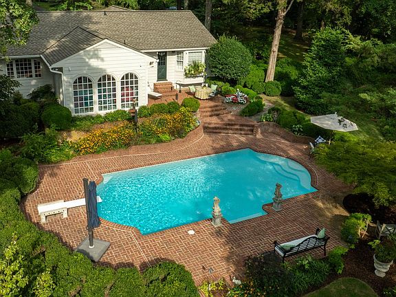Only minutes from historic Fredericksburg and the Rappahannock River lies a striking opportunity to own over 2.5 acres at the end of a sylvan cul-de-sac! Established within the Ferry Farm neighborhood, named after George Washington’s boyhood home site, this rare estate blends serenity and location into one unforgettable offering—including a second lot for added privacy, future expansion, or a separate residence. A sweeping circular drive leads to a wide front porch perfect for seasonal decor or balmy evenings sipping sweet tea. Built in 1960, this meticulously renovated and maintained residence features the timeless character of original solid wood doors, 9’ ceilings, refined millwork, a bold color palette, sun-filled windows, and custom wall finishes throughout. The interior is further enhanced by the hand-painted work by famed local artist Jim Eagan, a stunning addition to the overall theme of the home. A bay window spills natural light across the living room, where a classic fireplace flanked by bespoke shelving creates an atmosphere of warmth and sophistication. Your kitchen is a chef's dream! Featuring timeless Heart Pine floors, and delivering stylish functionality with its Viking gas cooktop and dual ovens, a Sub-Zero refrigerator, an integrated Scotsman ice maker, a Miele dishwasher, custom-built cabinetry, and an abundance of beautiful granite countertops. The adjacent eat-in area with its window seating and new tailor-made doors on the wood-burning hearth invites casual meals or fireside cocoa. An elegant sunroom with arched insulating glass windows and marble flooring, located off the formal dining room, overlooks your in-ground swimming pool—framed by a professionally designed four-season garden, an abundance of flowering greenery -- blending color and texture in every season. Enjoy the winding pathways, stacked stone borders, and statuary water features reminiscent of an English country garden. Both the sunroom and kitchen feature wet bars, making hosting large gatherings effortless as guests mingle between the interconnected rooms and expansive grounds. A gold-leaf embellished tray ceiling (another Jim Eagan touch) crowns the generous family room, where tall windows dressed in plantation shutters spill brilliant sunlight across the Caribbean Pine flooring. French doors open to a blue stone veranda designed for grilling, cocktails, or simply soaking in the view of your professionally designed gardens, complete with lighting and irrigation. Comfortable bedrooms stand ready for quiet repose, accommodated by a hall bath with a dual vanity. The tranquil primary suite offers a well-sized canvas for personalization, featuring an ensuite with a frameless glass shower and a Dutch door that leads to a brick patio. The surrounding landscape feels like a private park, with mature trees, thoughtfully placed seating corners, and hideaways for relaxing escapes during all four seasons. Stone steps lead to an old tennis court, ready for resurfacing and modern games, or transform it into something fresh. The finished walk-out basement features bespoke double doors leading outside, a recreational room with a brick fireplace, black and white Azrock tiles, recessed lighting, and a home office alcove. A recently renovated laundry room, conveniently off the kitchen, includes an oversized sink and a new washer and dryer. A recently upgraded electric furnace, two newer AC units, a dehumidifier, an Aprilaire humidifier, and an attached 2-car garage with custom doors complete the package. With easy access to Kings Hwy, nature preserves, and cultural landmarks, this setting is as convenient as it is peaceful. Come see how its singular character offers a lifestyle that few can match!
