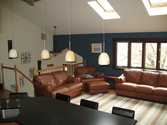 A must see, not your typical split! Walk through the expanded entry way to an open concept living room/kitchen area with sky lights and cathedral ceilings. The cathedral ceilings continue into the bathroom with a heated marble floor and sky light. Enjoy a 672 sq ft master bedroom with ample custom closets and a private balcony. Hickory floors in main living area and master. Lower level contains 2 large rooms that could be used for a variety of purposes and a bathroom with a beautiful marble and glass shower and laundry closet. Enjoy entertaining in the large level grassy lot with plenty of deck space and pool. Relax in the screen room while enjoying the gentle sounds of the waterfall in the fish pond. For more information contact the owner at 603-420-8532, rseymour@greatwolf.com or tseymour@mail.com.
