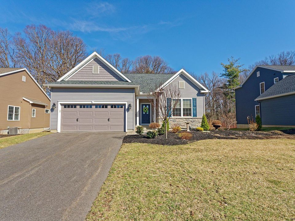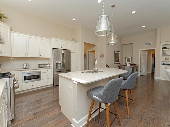 Why wait to build when you can move right into this 3 BR 3 BA 'like new' custom ranch home with upgrades galore? Buyers will love the open floor plan with premium hardwood floors throughout the main level (except for second bedroom), large quartz kitchen island, sunny great room with gas fireplace surrounded by built-ins. Beautiful three season room adjacent to deck overlooks a scenic wooded lot. Plenty of space for visitors and grandchildren on the lower level of this home, including a large bedroom, spacious family room, full bathroom, egress window and loads of storage. Enjoy the best of maintenance-free living in this luxury home with close proximity to shopping and easy access to highways. 2021-08-30