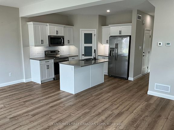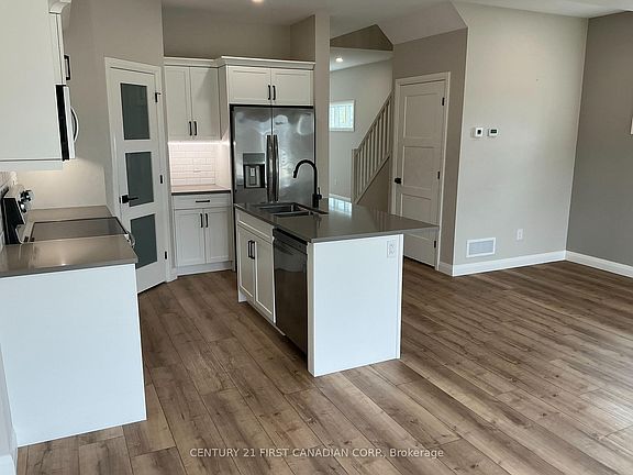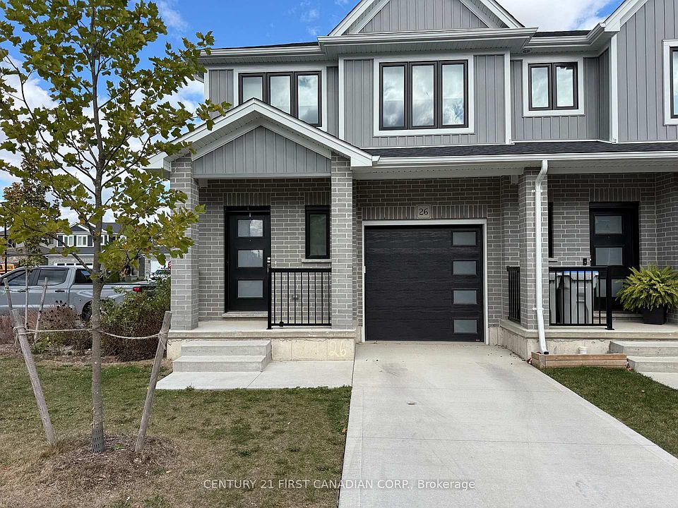 Welcome to 26-17 Nicholson Street, located in the sought-after Ridge Landing Subdivision in Lucan, Ontario. This home offers 1,560 sq. ft. of thoughtfully designed living space situated in a prime location that boasts a wealth of features that make it the perfect place to call yours. This 3 bedroom, 3 bathroom freehold condo offers plenty of space for a growing family, and features luxury vinyl plank flooring throughout. The open concept main floor includes a living room, dining area, powder room and kitchen, complete with quartz countertops, subway tile backsplash, under cabinet lighting and stainless steel appliances. Downstairs you will find a finished basement that has plenty of space for a play room, extra recreation room or storage. The second level features the primary suite that is complete with a walk-in closet and 3-piece ensuite bathroom, along with two additional spacious bedrooms and another 4-piece bathroom. With a sought after location that is close to schools, parks and only a 15 minute drive from north London, don't miss out on your chance to make this units yours! Enjoy low-maintenance living with a monthly condo fee that covers common area management, insurance, snow removal, lawn care, and street lighting.