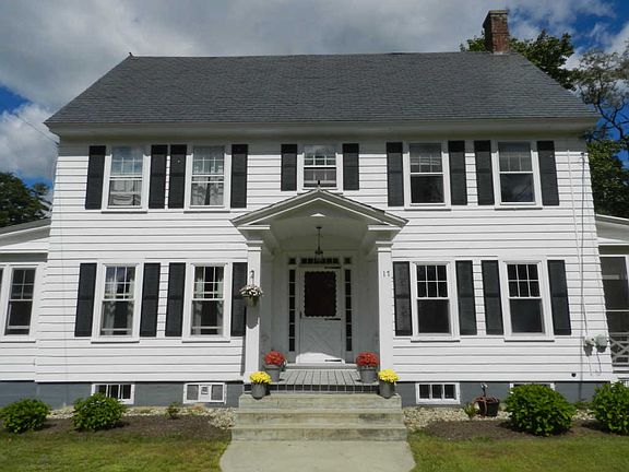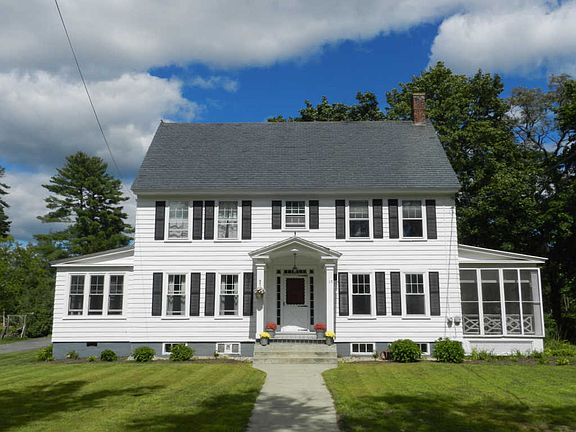 Charming 6 bedroom Colonial with an abundance of natural light, hardwood floors, eat in kitchen plus formal dining, den and a wonderful living area with fireplace and spacious screen porch, all connected via multiple sets of French doors. Take the handcrafted staircase up the two flights of stairs to four bedrooms and two baths on the second floor or the two bedrooms located on the third floor. Enjoy the sprawling back yard including an outdoor patio, garden area, garage, shed, and plenty of space for outdoor fun. The house sets back off the road, and is accessed by the paved drive or concrete walkway to the front door. Come take a look at this classic well kept New England Colonial.