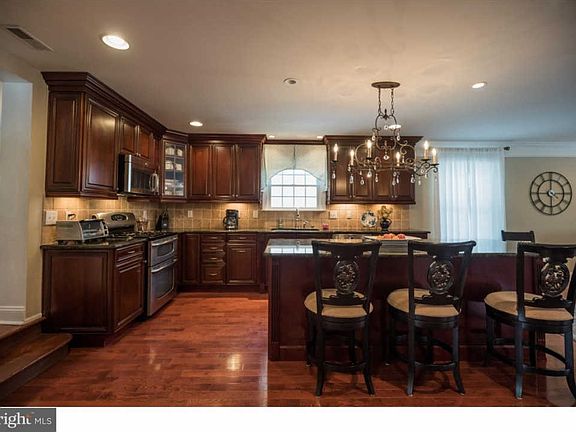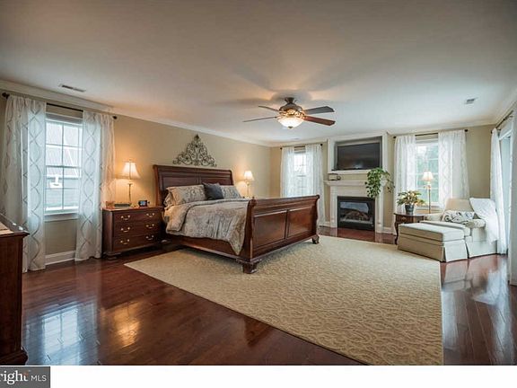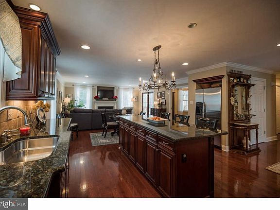 Wonderful, private location in Medford Village, backing to woods & hiking trails, but close enough to walk to get your morning coffee or enjoy a meal at the popular Pop Shop or Braddock's Tavern. Enjoy the rocking chair front porch in warmer weather and enter into an open floor plan with plenty of natural light everywhere. Kitchen has been remodeled with all the popular amenities including 42 inch cherry cabinets, under cabinet lighting, tumbled,marble back splash granite and stainless steel appliances. This opens to your family room with gas fireplace, large pane windows & home office. There are gleaming hardwood floors custom crown molding and wide baseboard trim throughout the house. The home boasts 4-5 bedrooms. 3 on the 2nd level and 2 on the 3rd level which are private separate wings. Great for visitors,or Aupair. Master suite enjoys a gas fp, sitting area and multiple closets with your own deck to relax and view the peaceful scenery. There is a lower, basement level, finished, newly painted and new carpets with a walkout to outdoor living. 2 zone,newer HVAC systems provide efficient, lower monthly utilities throughout the year. Outside entertainment includes 2 decks, a patio and a grill ready to go attached to natural gas service. Your summers can be spent in this fully fenced, large back yard that is located on a bluff overlooking the woods and a tributary of the Rancocas Creek, (see aerial pic). We're located at the end of a very quiet street. Come see this home today and find the home of your dreams. Note: there are a total of 4 fireplaces, however family rm and master are working, the remaining have been shut off and are as is.