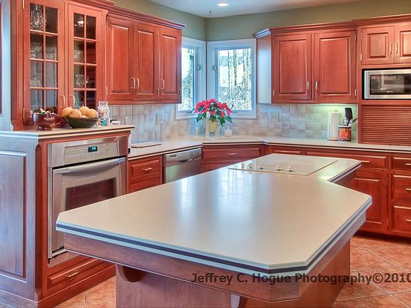 This provincial styled home is located in the community of Northridge features include a custom cherry wood kitchen, corian tops, large island w/cook-top range, desk area, walk-in pantry, breakfast nook, hearth area, brick fireplace, tray ceiling w/fan, recessed lights, wet bar & tile flrs. Family rm w/10ft ceiling, large glass patio doors, brick fireplace & built-in cabinets. Formal dining rm. Master suite w/tray ceiling w/fan, tile surround whirlpool tub, tile shower, large walk-in closet & sitting rm. Laundry area w/built-in cabinets & utility sink. A study & powder rm complete the first flr. The second floor has 3 bedrooms and full bath. Finished daylight basement w/over 1,000 sq ft of space, separate bedroom, utility area & large storage area. There is a full deck on the first flr and basement level. 2-car garage w/opener. Over 1/2 acre home site that backs to woods. This home is loaded w/custom trim & lighting accents. It also has many different built-ins and other amenities.