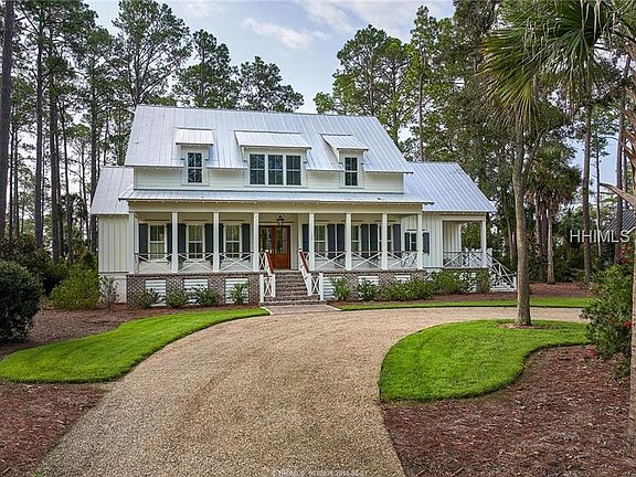 Located on over 1.2 acres in Barge Landing, this 4 bedroom, 4.5 bath home captures long marsh views and beautiful sunrises. The first floor features an open kitchen centered around a large island, great room with a fireplace, dining area, master suite, and master office. A generous screen porch features an outdoor fireplace, television, grill, and views of the marsh. Wolf and Sub-Zero appliances, wide plank pine floors, shiplap walls, and built-ins; this home has all the upgrades. The second floor includes two large guest bedrooms with baths, and a large gathering area/media room with a wet bar area.