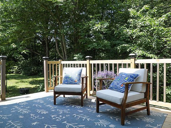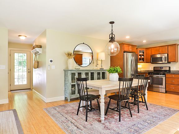 This charming home, just a short stroll from town, offers both convenience and appeal. The front porch welcomes you in and offers a wonderful place to relax and enjoy the outdoors. Inside, you'll be welcomed by the cheerful ambiance of bamboo flooring and a kitchen outfitted with elegant cherry cabinets and granite countertops. The layout includes a spacious first-floor primary bedroom, offering convenience and flexibility for various living arrangements. The inviting living room and dining area open to the kitchen, creating a seamless flow that's perfect for entertaining guests. Heat pumps throughout the house ensures that the home remains comfortable throughout the year, providing efficient heating in the winter and cooling in the summer. Upstairs, you will find two more bright and inviting bedrooms along with a full bathroom. The full walk-out basement provides additional family space as well as ample room for all your storage needs. The back deck overlooks a beautifully landscaped, fenced-in yard, complete with raised garden beds, offering a private and serene escape. Nestled on a quiet dead-end street, this home ensures privacy and tranquility. With sidewalks leading directly to town, you truly get the best of both worlds with this delightful residence.