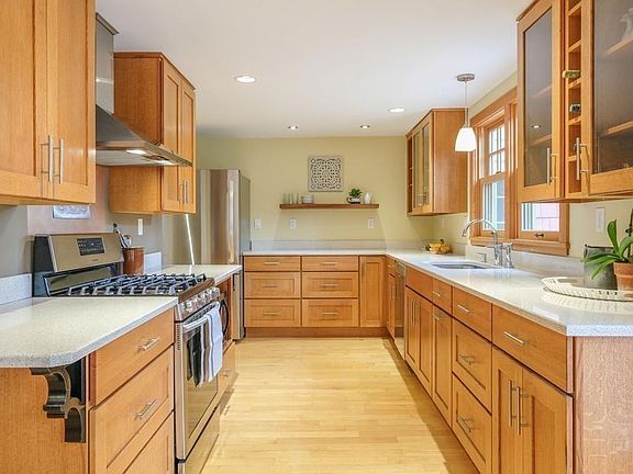 Exceedingly charming expanded Cape with lovely private fenced in back yard. From the moment you enter the home you will appreciate the attention to detail and quality finishes. Complete energy efficient remodel + addition in 2012. The fireplaced living room opens to a cozy family room creating a large space for entertaining. Beautiful kitchen w/ lovely quarter-sawn oak Cabinets, quartz counters and brand new SS appliances opens to dining area overlooking a lovely back yard and deck. Master bedroom suite with generous master bath + walk in closet. Second bedroom and full updtd bath complete the first floor. The entire multi purpose 2nd floor is bright and open. It serves as the 3rd BR comprised of 2 rooms, and half bath, cathedral ceiling, skylights & new carpet. Basement is large & unfinished and heated. Bonus room with radiant heated floor used as an art studio. Gardeners will appreciate perennial gardens, grape arbor & shed. Near major commuting routes but a truly private oasis.
