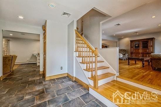 Beautiful Cheesequake Woods expanded custom 5 bedroom 3.5 bath updated home. Stunning eat in kitchen with new quartz composite countertops, tiled backsplash, wht cabinets, LED recessed lighting, under the cabinet lighting, breakfast bar, two ovens, pantry, ceiling fan, french doors leading to patio. Freshly painted main level, wood burning fireplace, hardwood floors throughout. This home has 2 master suites. Custom addition master bath is an oasis with separate soaking whirlpool tub adjacent to bay window, steam shower, double sink vanity. Master addition includes 4 closets. The fifth bedroom has a huge wic. Guest bathroom has a whirlpool tub. Heated 2 car garage, basement, large lot, new roof, huge concrete patio, stand by Generac generator. Perfect for a large or extended family with 2872 square feet of living space. Close to major roadways, shopping, mass transit. Hurry won't last. Extra features: kitchen corner pieces have lazy susan built ins, ceiling fans throughout, central vac system, central sound with surround sound, outside speakers, painted garage, back up hot air furnace, ultra violet light air purifier, massive extended driveway can fit over 10 cars.
