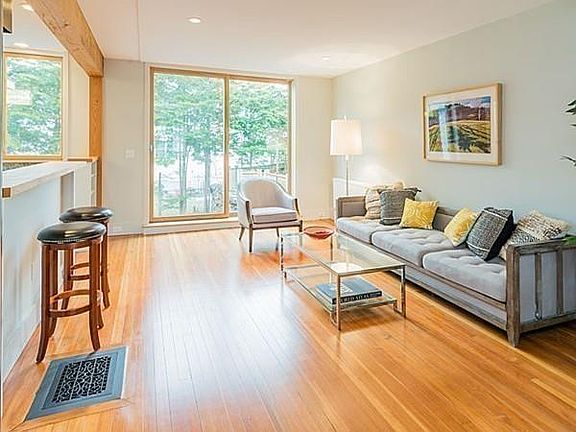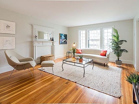 Unique late 19th century carriage-house/townhouse located just outside Arlington Center. Meticulously renovated by master craftsman with detailed attention paid to period restoration while incorporating modern amenities. The main living level consists of a New England-style foyer with double French Doors leading into an oversized front-to-back living/dining room and continues to an open Kitchen/Den with large glass sliders out to a new deck and yard. The eat-in kitchen features a breakfast island with dramatic hand-carved Fir Wood Beam and custom externally-vented hood. Three spacious bedrooms, 2 brand new bathrooms, ample closets along with a walk-in cedar closet, Heart Pine flooring and a Jack and Jill staircase. Also, new wiring, state-of-the-art 12-zone gas heating system by Buderus and Viessman, architectural-shingle roof and superb unfinished basement with 7'-8" ceilings and beautifully poured concrete floor ideal for woodworking shop or additional living space