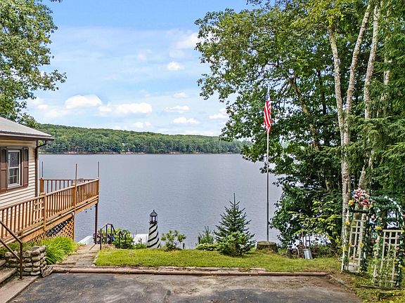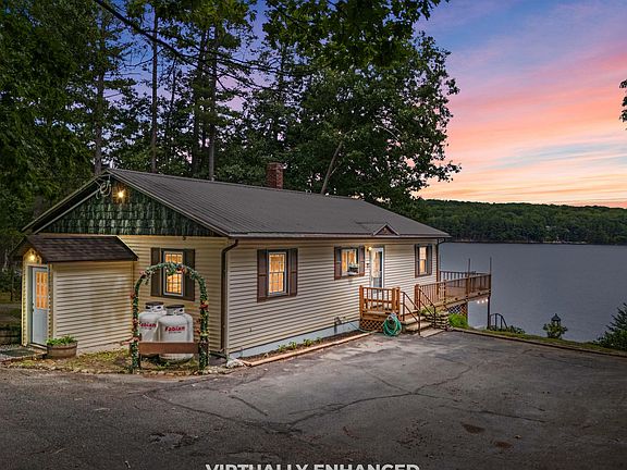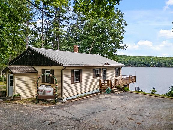 Enjoy this beautiful year-round home on Brettun's Pond with an in-law suite & detached 2-car garage. This is an amazing opportunity to own waterfront and an income producing property! Upstairs 2-bedrooms, full bath & kitchen, livingroom with water views and deck overlooking the pond. Downstairs also with 2-bedrooms, full bath & kitchen with granite counters and walkout onto a patio that is just steps away from the water!