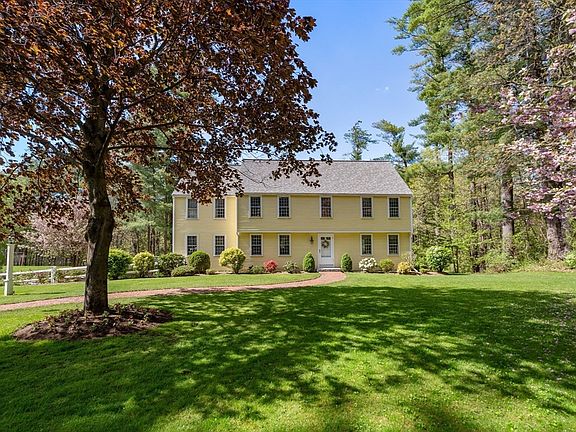 Pristine and immaculately maintained classic center entrance colonial on a cul de sac of homes with spectacular country views. Over an acre of professionally landscaped gardens with stunning flowers all year round. This home has been beautifully updated and maintained! Wide pine floors throughout. Updated granite counters and s/s appliances in kitchen opens to family room with rumford fireplace. A cathedral great room with radiant heat floor with walls of windows and gorgeous views of nature to enjoy all year. First floor office with custom built ins, living room and dining room. Four generous bedrooms upstairs including a primary suite with fireplace, full bath and multiple closets. Walk up unfinished attic for additional storage. Finished walk out basement with exercise area. 3 car garage! Irrigation. Move right in. Electrical updated 2021, insulated attic 2016, roof 2015, converted to gas heat with a new Buderus furnace 2013. Convenient to Rt. 117, Rt. 2 & commuter rail.