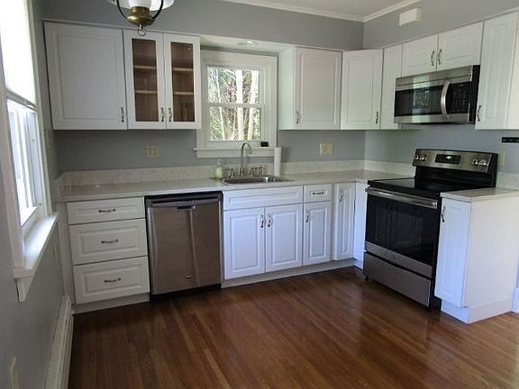 Charming, newly remodeled 4 bedroom 2 bath home on a corner lot in a nice neighborhood. The manicured yard includes a side patio surrounded by large shade trees with entrance into the kitchen. This home has beautiful hardwood flooring, freshly painted walls, and utilizes all available space with many built in cabinets, closets, and shelving on both floors. Original wood trim and some doors complete this homes appeal. The main floor features an open flow floor plan from the kitchen, through the dining room, into the living room that includes a wood burning fireplace. Also throughout the home are new energy efficient vinyl windows for a bright and cheery feel. 2 bedrooms are included on main floor. Bath has a new tiled walk in shower. The second floor consists of 2 bedrooms and bath, both bedrooms have walk-in closets, hardwood floors, and built-ins. There is access to attic space off of bedrooms. The full basement has access from the kitchen and houses the laundry hookups and water heater. The space has room for 1 car with an electric garage door opener leading out to the paved driveway. A must see!! Call us for an appointment today!