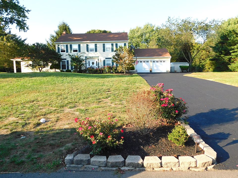 Nestled on a quiet street in desirable Northern Howell is a lovely 5 bedroom Center Hall Colonial with a Southern Exposure on 1.19 acres. The owners have made numerous updates to their beautiful home. The open floor plan allows for easy living and entertaining. Home boasts spacious updated Kitchen with Maple Wood Cabinets, Granite Counter-Tops and Breakfast Bar. Stainless Steel Appliances: Stove, Refrigerator, Microwave, Dishwasher.The fifth bedroom with private entrance and covered porch allows for multi use of the living area: Mother Daughter, Home Office, Studio, Adult/Teenage Quarters. Full bath and separate zone for heating and cooling.