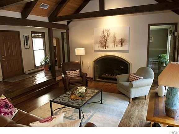 Style, Condition, Location, Privacy and Property! This home has it all. Handsome Post & Beam living room with over sized fireplace and French Doors leading to one of three decks. Formal Dining room with coffered ceiling recessed lighting and chair rails. Chef's kitchen has stainless steel appliances, large silestone center island, tile floors, custom built-ins and second working fireplace. Hardwood floors compliment this custom built home. The large master bedroom enjoys it's own private deck and updated bath. Additional bedroom currently used as an office. The second floor offer a spacious bedroom and updated bath for family or guests. Full basement includes additional workspace and a custom wine closet for your collection. Meticulously maintained, this home is situated on over eight private acres with flowering shrubs and gardens. The property borders historic Warwick Village and is convenient to Main Street's restaurants, banks, post office and stores. A home to be proud of.