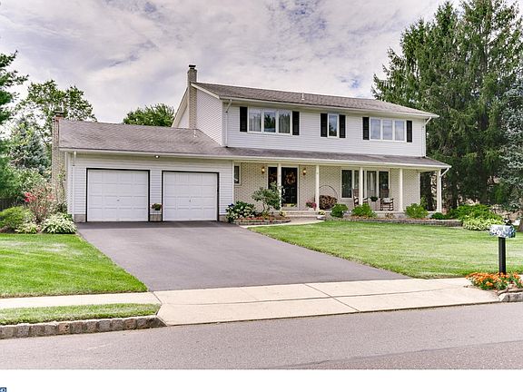 Pristine colonial located in the desirable Golden Crest neighborhood of Hamilton! As you approach this lovely home, you will notice the pride of ownership. The pillared front porch is the ideal setting for a rocking chair and a cup of morning coffee as you enjoy the quiet neighborhood and spacious property. When you enter the freshly painted home, you are greeted by an over-sized foyer with beautiful hard wood floors. The hardwood floors continue though-out the home in the spacious living room and bright, cozy den that provide a perfect setting for family gatherings and entertaining. Off of the large immaculate, eat-in kitchen boasts a stunning formal dining room, featuring a brick fireplace and french doors overlooking the extremely private yard with mature trees. Outside is an alluring space to relax and entertain, featuring a built-in pool with 3 year old liner and an over-sized hot tub built into the maintenance free trex deck. Upstairs this home highlights four sizable bedrooms, each decorated with classically, chic modern details. The elegant full hallway bathroom was recently renovated with a gorgeous shower including 3 fixed shower heads, tile floors and vanity with granite counter-top. Inside the grand master bedroom are two closets, one of which is a walk-in and a renovated bathroom with new counter-top, toilet and flooring. This home also features a large finished basement with an en-suite and private entrance. It includes an eat-in kitchen, living room, exercise room, large closets, as well as a full updated bathroom. This space would be perfect as an in-law/au pair suite. The superb quality of this breathtaking home ensures a warm welcome for its new owner!