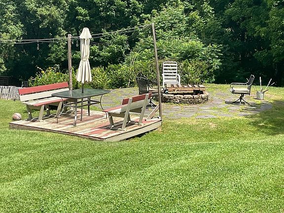 The current owners have done much to improve this single story home. Newer kitchen, flooring, heat pumps and lots of paint! Generous sized primary bedroom with access out to the full length deck overlooking the lovely yard. Full walk out lower lever with family room and wood stove plus another large bedroom. Outside your will find a pretty patio with fire pit , small fenced in stable area and lovely lawn. Come make this your new home!