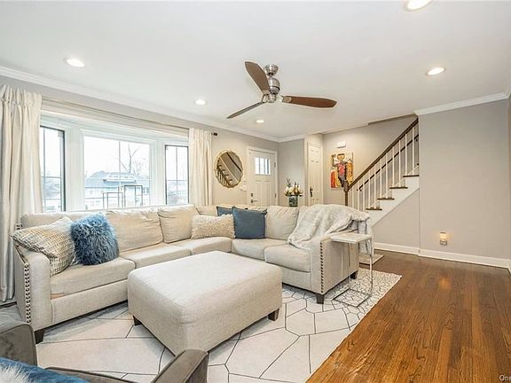 Beautiful colonial with a large, park-like backyard in Historic New Rochelle Heights. Enter into a Spacious living room with a bay window and brick fireplace, and a formal dining room with new sliders leading to the backyard. Kitchen w/ stainless steel appliances and brushed nickel fixtures, updated powder room, Oversized primary bedroom with 2 large closets, All 3 bedrooms have generous windows, dual exposures, and ample closets. Full bath with a granite vanity, Carrera-styled porcelain tiles, and Rohl spa brushed nickel fixtures. The bonus room in the basement features wine-barrel tiles, recessed lighting, walk-in and under-stair closets for extra storage, an additional storage room with Utilities, and laundry with a new washer/dryer. The home features recessed lighting, crown molding, new electric outlets, New Pella windows, and doors, a new runner on stairs leading to the 2nd floor & refinished Jacobean hardwood floors throughout. A new A/C wall unit on the first floor, a new central air unit on 2nd floor, heating updated, new outdoor sensor lights, new large hot water tank. New Irrigation/Sprinkler system. New landscaping includes lavender and wildflower garden. New ADT security system, fire, and CO2 alarms from ADT as well. The attached garage and expanded driveway are large enough for 4-5 cars. Enjoy the Community playground, green space, & clay tennis courts. Perfect home for entertaining!