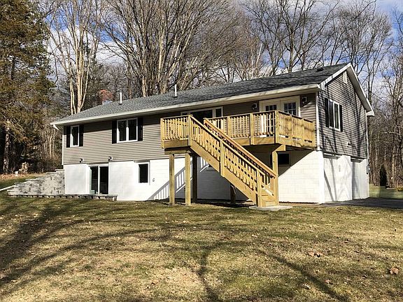 This totally renovated house is on 1.5 acres in the town of Rhinebeck. Natural light fills the brand new open floor plan living room, dining, kitchen. Granite counter tops, large island with bar seating and ample storage as well as new stainless-steel energy efficient appliances. Beautiful master including a walk-in closet, and en suite with heated tile floor. New hardwood floors throughout, and tiled bathrooms. All new windows, doors, siding, electric, plumbing, central air, heating system, roof, and much more. Enjoy the wood burning fireplace in the downstairs family room. New foam insulation in the walls and garage and new blown insulation in the attic. Enjoy your backyard with beautiful mature trees from the patio or new deck. Conveniently located only 12 minutes to the TSP. You won't be disappointed, come make this your home!