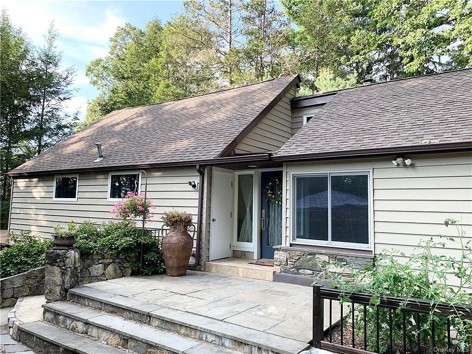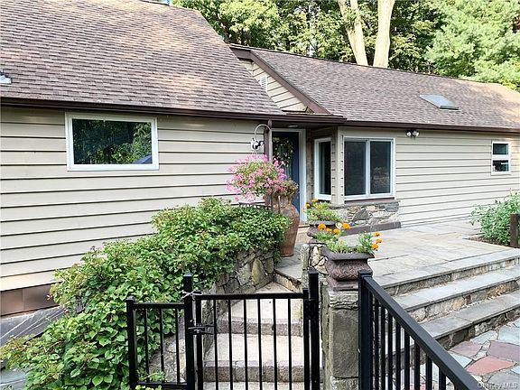 Architectually stunning custom built contemporary RANCH with views of Lake Mahopac. This 70' ranch home located on .44 private landscaped acres features an open, well-lit floor plan with a gorgeous custom European inspired kitchen with two sinks, pantry, granite countertops, tile back-splash and double wall oven, living room with large natural stone fireplace and wood burning stove, 2 bedrooms plus den on the main floor (lives like a 3 bedroom), includes a master bedroom with a large walk-in closet, modern full bath and an unbelievable "SPA" style bathroom which includes an over-sized Jacuzzi tub with massaging jets and a large walk-in two person Kohler shower with multiple shower heads. There is also a huge custom built 3-car garage with 12' high ceilings and walk-up over head storage. Stone walls and walkways surround the beautifully landscaped fenced in yard and there are Bluestone and slate patios for outdoor entertaining. Just Listed! Won't last!