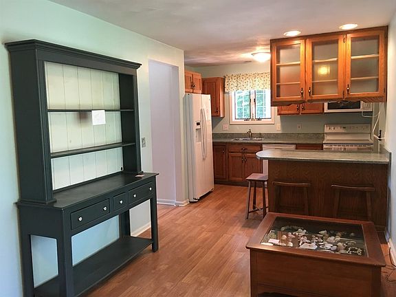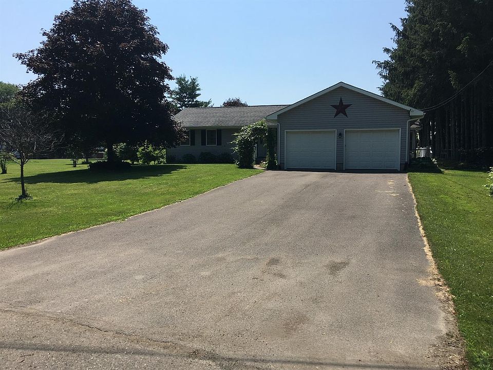 Extremely well cared for ranch in a lovely setting; conveniently located with an easy walk to school & stores. Move right in and enjoy a bright and sunny interior with an open floor plan, brick fireplace, and plenty of storage. Garage entry gives way to a combination mudroom/laundry room just off of the kitchen with tons of pantry space. The sunroom and back deck open up into a park-like backyard