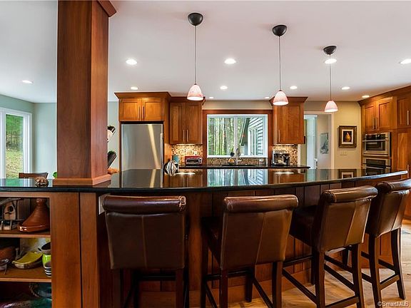 Looking for an open concept home with a true chefs kitchen? Here it is Enjoy entertaining your friends and family in this beautiful kitchen, featuring black granite counters, stainless steel appliances and gorgeous cherry cabinets. You will be the center of attention in this amazing gallery kitchen. This stunning modern home is private but convenient, set on 2 and a half acres on Pinnacle Mountain but less than a mile from the center of Simsbury. With 4 bedrooms, 2 and a half bathrooms, a huge screened in porch, an oversized two car garage and a first floor mudroom with washer and dryer this home checks all the boxes.