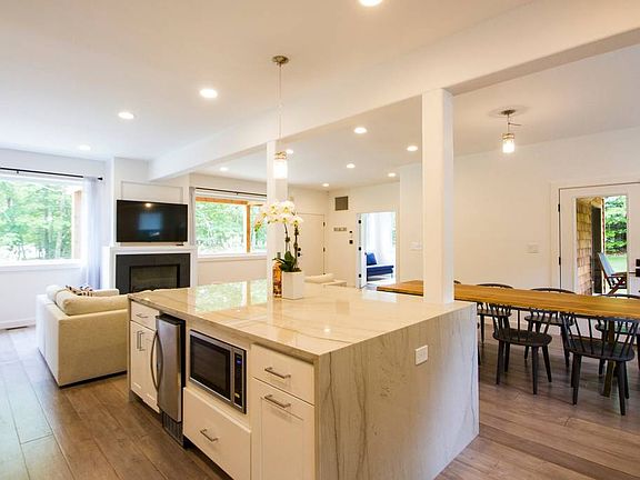 Rental Registration #: rp230080 Heart of Southampton! Min. to beach & village! -5 bedrooms w/ own en-suite bathrooms (6 baths) -Custom designed home hosted by a couple who is a Fashion Director (wife) and Hotel Architect/Builder (husband). -New heated gunite pool, hot tub, BBQ! -Pool House w/ sauna -Professional landscaped backyard & lighting! -Game Room w/ shuffleboard table -SONOS inside and outside! -Gas fireplace -Movie theater -Smart Home w/ Central Heating & Air Conditioning Enjoy 2 houses- great for the in-laws! Welcome to your brand New Construction vacation Hamptons escape! With everything you and your extended family need in a convenient location in the Heart of Southampton in Tuckahoe Woods Preserve. Perfect for family fun or the coworker stay where every bedroom is like a master! And don't forget the coveted guest-house with a separate kitchenette, bathroom, and sauna! Only 10 minutes to the best Beach on the East Coast- Coopers Beach and 7 minutes to the village for shopping and dining! In town for golf? Only 5 minutes from Shinnecock Hills Golf Club, National Golf Links of America, and Sebonack Golf Club. With an open floor plan for gathering and entertaining, you can warm up with the huge gas fireplace in the heart of the home. Open the double sets of French doors to the private deck with large sectional sofa and patio with cushioned dining set. Enjoy open air living while listening to Sonos sound system inside and out. Play some games with friends in the den off the main living space. Lounge by the new heated gunite pool (with removable safety fence- great for kids!) and 8 new lounge chairs, sectional sofa in the professionally landscaped backyard with new sod and beautiful landscape lighting. Kick back with a drink from the kitchenette in the pool house. Let the kids enjoy the private play area with a swing-set and slide. Enjoy a soak in the new hot tub all year round! Got a rainy day? That's a great excuse to stay in and watch a movie on the big screen in the movie theater. Retreat to your 5 huge hotel-like guest suite bedrooms each with their own spa like bathrooms and all with King beds! The facts: Brand New Custom Home designed with hospitality in mind: (See floor plans for more details) -5 bedrooms / 6 bathrooms --Bed 1: KING --Bed 2: KING --Bed 3: KING --Bed 4: KING (Lower Level Theater) --Bed 5: KING (Guest House) (2 cribs also available for any room) **Pets considered- must be pre approved.** New- routine maid's service available!