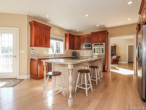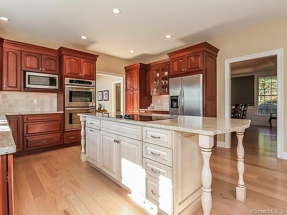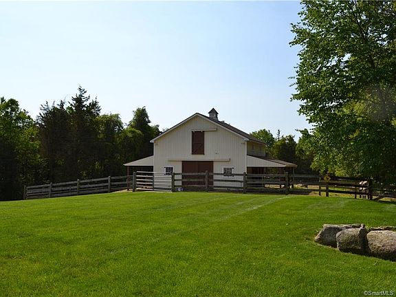 Relax & enjoy the cool and shady wrap around front porch of this home set on 5 acre horse property. Colonial offers floor to ceiling family room with stone fireplace. Gather around center island in spacious kitchen, with granite countertops, stainless steel appliances, eat in area. Main floor office with built ins ( could be 5th BR. Formal dining room with tray ceiling. Finished walkout lower level has large game room, gym & half bath with in-law potential. Sunny back deck overlooks two barns, fenced pastures, wooded riding trails. Main barn has 4 matted stalls, tack room, center isle, full hay loft, water & elec. 2nd barn has 2 stalls, elec., with large storage or tack room in center. Fenced paddock area, with room to expand. 3 car attached garage with workbench. Large shed. Pool site. Security system. Private country setting in scenic location, yet minutes to shopping & schools.