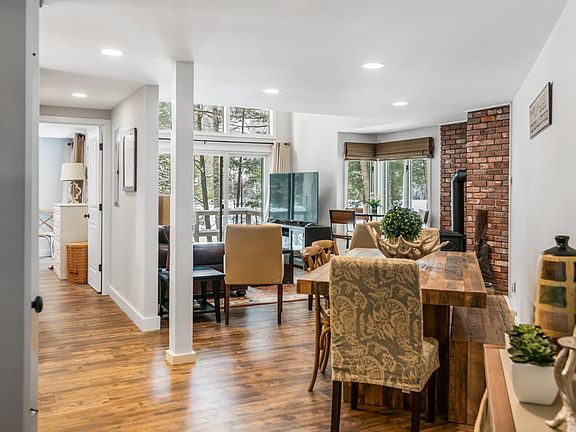 This Eastman condominium boasts a wonderful view of Eastman Lake. With a Wheelock style floor plan, this condo has been extensively updated with notable features, like vinyl state-of-the-art flooring in the great room, a charming brick hearth with a gas fireplace, and a beautifully updated kitchen with custom cabinetry and countertops. The bedroom suite opens to a deck overlooking the lake, perfect for enjoying early morning coffee and sunshine, and its bathroom features updated vanities. The property also includes easy access to the lake from the deck, offering year-round lake views and convenient entry to 2 sandy beaches and South Cove Activity Center. Residents can enjoy the nearby walking trails and various activities such as lake activities, golf, cross-country ski trails, tennis, Pickleball, an indoor pool and fitness center. Superb location with easy access to I-89 and situated in the Upper Valley, Dartmouth / Lake Sunapee region.