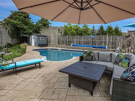 Welcome home to Plum Tree Lane in scenic Grimsby. Highlights of this spacious four bedroom family home include generous lot, hard wood floors, granite counters, stately entranceway (cathedral ceiling) and fully finished lower level featuring side door entrance, recreation room, three-piece bathroom and two additional bedrooms. Main floor laundry, large kitchen (ample cupboard/counter space), five-piece ensuite, fireplace, pot lights, double car garage and recently updated furnace/Air Conditioning (2025) are just some of the features of this exceptional home. Relax and entertain in the resort-inspired backyard retreat featuring in-ground saltwater pool (heated), gazebo, sizable deck, concrete surround, convenient pool shed, outside shower, relaxing hot tub and established gardens. Perfectly located close to schools, Lakefront parks, farm fresh markets, award winning wineries and the picturesque towns along the Niagara Escarpment including Grimsby, Beamsville, Vineland and Jordan.