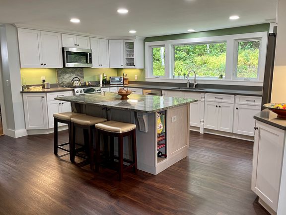 Renovated Sunapee ski/lake house (turn key fully furnished) with stunning views of the lake and Mt Kearsarge. This historical estate has been lovingly restored with a unique mix of modern conveniences, well-appointed, authentic character with unique details. This is NOT your typical cookie cutter house. Features include... + Turn key fully furnished 3 story home set on 5 private acres - yet only a mile to i89 + 5 bedrooms, 3.5 baths with wrap around farmers porch to take in the water and mountain view + Large custom kitchen with amazing fusion quartzite island, Bosch SS appliances with gas range, large windows to bring in the natural beauty, pellet stove facing the island to add warmth and ambience + Spacious primary suite with en-suite bathroom with walk in shower featuring 24" square rain shower, 3 body jets, quartzite bench seat with in shower lighting, double vanity sinks and large walk in closet with shelves, dresser and plenty of room for hanging clothes + Pellet stoves in both the living room & kitchen - plus the option of forced hot air and/or electric heat throughout the house + Garage with automatic opener plus plenty of parking next to the house + Fabulous center staircase with rope handrails and portholes + High-speed Internet throughout the house + Living room with multiple seating areas - choose to relax by the warmth of the pellet stove or on the comfy couches next to the large flat-screen TV + Dining room with antique farmers table, cool glass and metal chandelier and built in lighted glass door cabinets + Laundry area - washer/dryer on 2nd floor + Gym (separate building on property) with exercise equipment, elliptical, weight machine etc + Interior - painted in neutral earth tones + Tons of windows to bring in lots of natural light + Gas grille on porch + Convenient location to access skiing, lakes, mountains, hiking yet only 20 miles (all highway) to Dartmouth/upper valley, 30 miles to Concord & 90 miles to Boston. Beach (with facilities) and boat launch a short walk away as are hiking trails. Supermarket, restaurants, shopping just minutes away. 7 miles from Mt Sunapee. + Yard overlooking the water with firepit, plenty of stone walls, terraced gardens, large boulders and outdoor space Rent is $4,500/month and does NOT include heat or electric but does include; high speed internet, cable, water & sewer. Available September 1st. Flexible lease options with minimum 6 month rental. I own the property, I'm not a realtor, you'll be dealing directly with me.