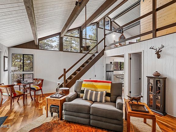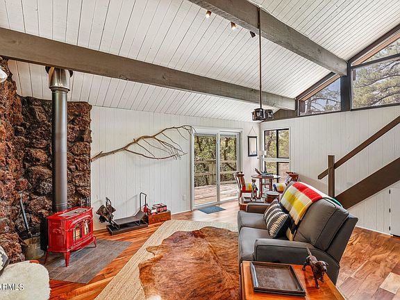 * Perfect getaway in the forest of northern AZ. Everything in this home has been recently updated with a new roof, beautiful acacia wood flooring, brand new cabinets and appliances, updated septic system and all new paint. Enjoy this environmentally-friendly home with an expansive deck overlooking the natural beauty of the area. 2 bedrooms plus a loft, with a wood burning stove to enjoy all seasons. Huge trees surround this private and cozy home with a great gathering place around the firepit to appreciate the starry evenings. The surrounding area is a wonderful place to all kinds of wildlife. Most of the furnishings are available for sale on a separate Bill of Sale. Don't miss out on the opportunity to own a little piece of heaven.
