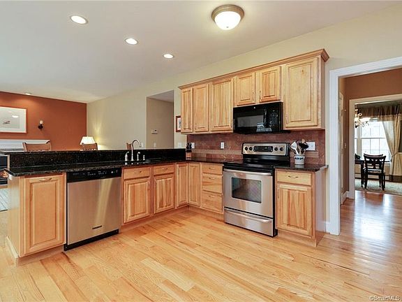 Beautiful and unique, lovingly maintained 2002 colonial situated on a private cul-de-sac. This home truly has it all; the large updated inviting kitchen is highlighted by custom cabinetry with soft close drawers, lots of counter space and spacious breakfast area that opens to a warm & inviting family room. Both spaces embrace the expansive views of the serene woods, large deck and patio behind the home. These areas beckon entertainment. And the front of the home enjoys sweeping views of a lush front yard. The home boasts two family rooms, so there is plenty of space to accommodate a crowd. This home has custom finishes throughout, and includes hardwood flooring and attention to detail, as well as 9' ceilings and a 13' vaulted ceiling in the family room, and walk-out basement as well. The custom designed rear composite deck and sunken stone patio surrounded by the herb gardens adds expansive outdoor living space. This home offers professionally designed stone walls, walkways, and patio that enhances the exterior landscaping. The 12' x 18' Kloter Farms shed with double 4' doors will easily accommodate all of your lawn care equipment. There is a small loop path through the woods (behind the home), and the well known Airline Trail is also within walking distance. Located close to Lake Pocotapaug which has a residents-only park, restaurant overlooking the water, and a small marina. An excellent home to make your own, and enjoy all that this location has to offer!