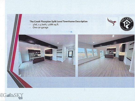 Welcome to one of the newest subdivisions in Anaconda, The Old Works Estates.. Side one of the townhouse, located on the right side, has been completed, sold and occupied. Side two should be completed by end of April 2025. Centrally located near downtown Anaconda, Goosetown Athletic Club and of course, The Old Works Golf Course. The main floor contains the living room, dining area, kitchen and a half bath. Upstairs holds a large master suite complete with bathroom and walk in closet. There are two additional bedrooms and another bathroom. Laundry is located on rhe second floor as well. The townhouse includes a single car garage and a small enclosed backyard with paved patio. Fencing, underground sprinklers and sod will be completed as soon as weather permits. Come join us at The Creek at Old Works Estates. You will be glad you did.