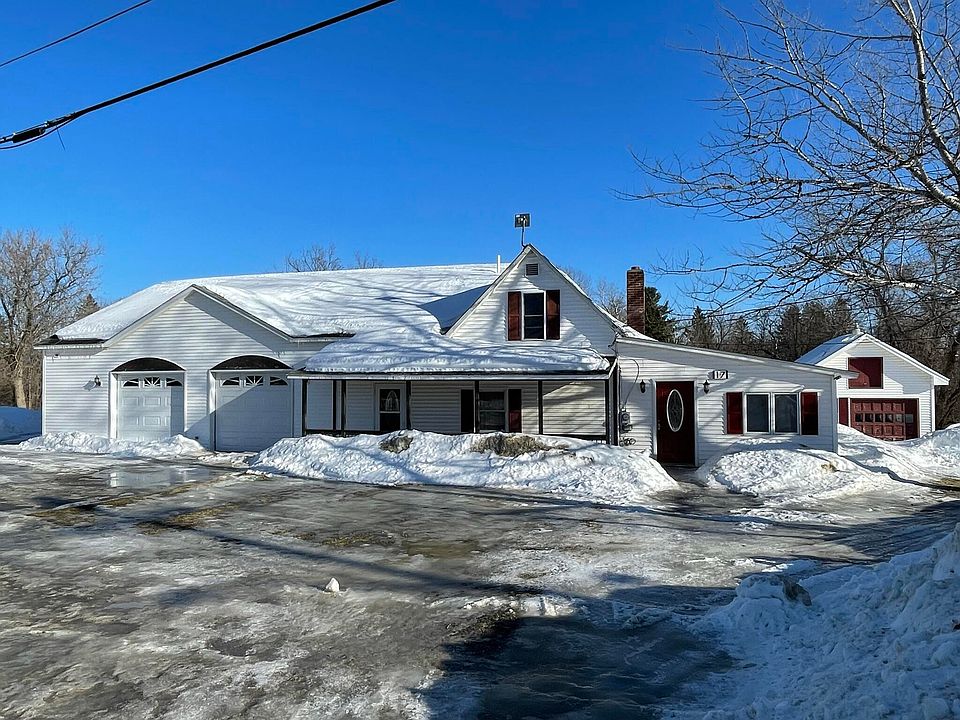 Lovely 3 bedroom ranch on quiet road in downtown Mapleton! Beautiful sunroom, large open kitchen, dedicated entry way with huge closet, first floor bedroom with brand new bathroom attached. Covered front porch, and paved driveway. Did I mention the jumbo garage? Heated, with three overhead doors and a full storage space above. Waterfront property on the Mapleton Mill Stream as well as a double in-town lot. This amenity is heard of! Amazing opportunity to settle in Mapleton! Call today!